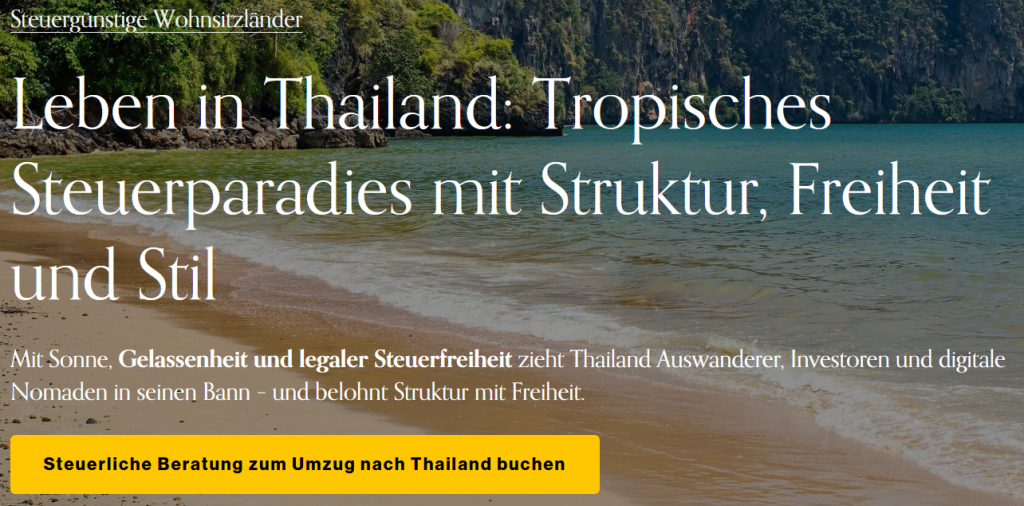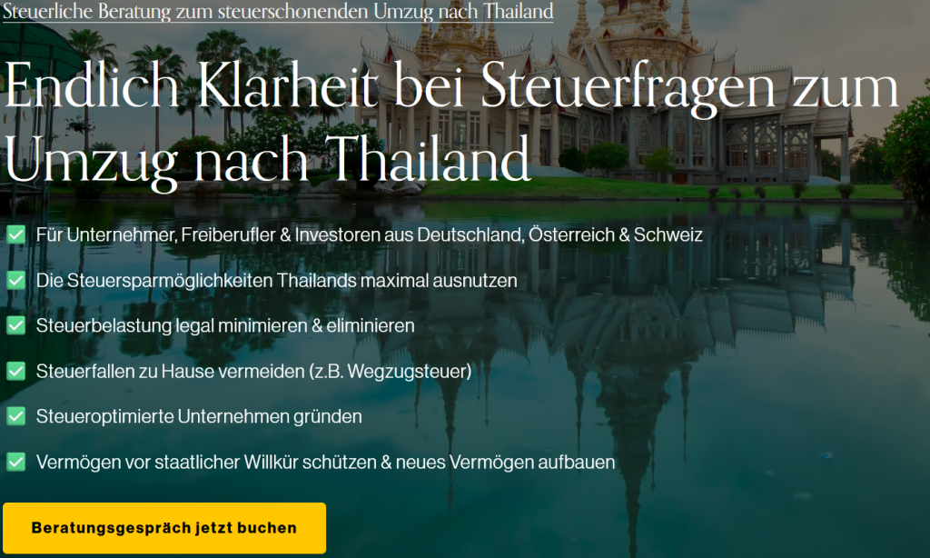 Dies ist schon fast wieder lustig, da auf der ersten Seite der Webseite über Thailand auch steht: „Steuerliche Beratung zum Umzug nach Thailand buchen„.