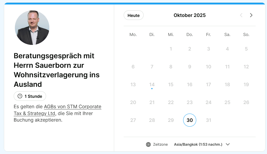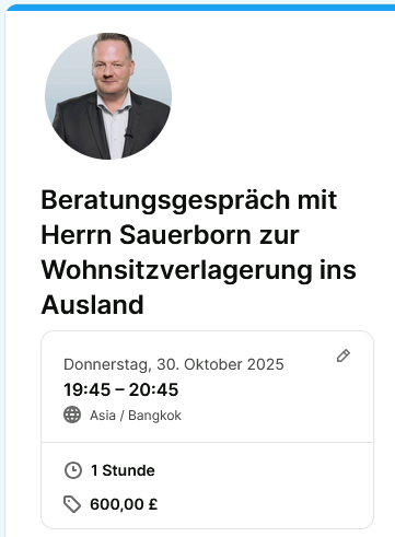 Klickt man dann auf die „Steuerliche Beratung zum Umzug nach Thailand buchen“ kommt Folgendes: