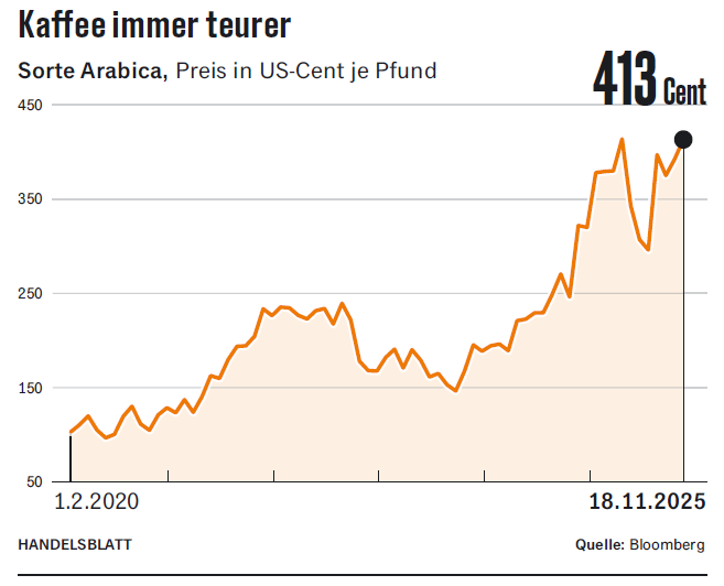 Zusätzlich steigt der Kaffeehunger der Chinesen auch jährlich um gut 20 %, was ein gewichtiger Faktor im hohen Kaffeepreis darstellt. Ich mag ohnehin keine Filialgeschäfte, was insbesondere Starbucks repräsentiert, dennoch finde ich es so lustig, dass ausgerechnet der chinesische Luckin Coffee, siehe NewYorkTimes, mit seinen 26.000 Filialen (2025) Starbucks erhebliches Kopfzerbrechen bereitet.